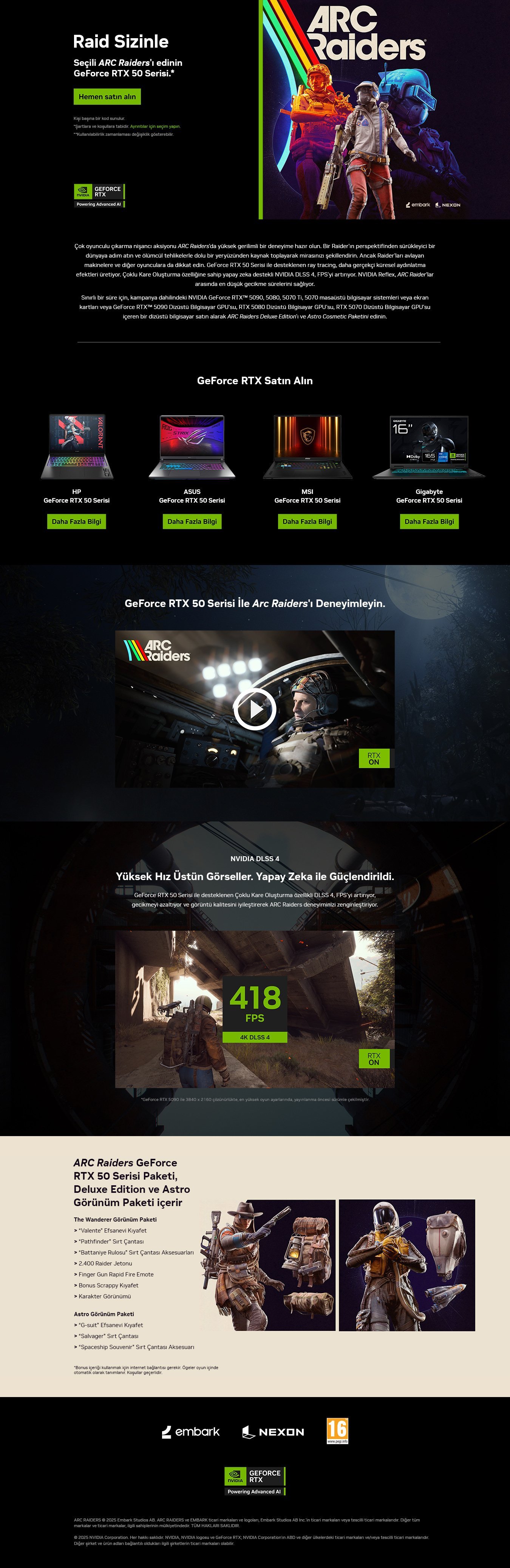 Raid Sizinle | Seçili GeForce RTX 50 Serisi Ürünlerle ARC Raiders'ı Edinin!