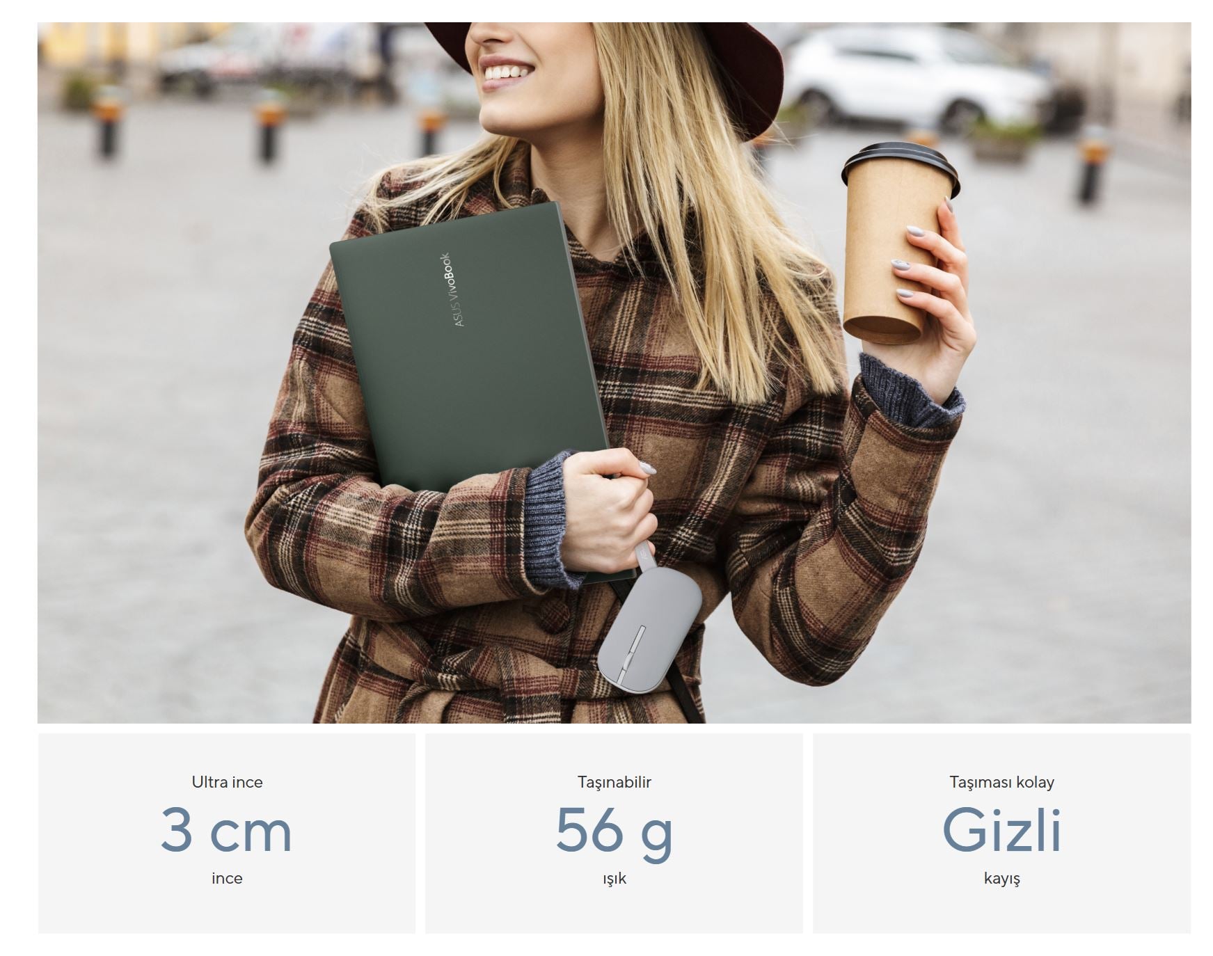 Simetrik ASUS Marshmallow Mouse MD100 Lite, sol veya sağ el kullananlar için idealdir. Sadece 56 gram ağırlığındaki fare, çalışma alanından toplantı odasına geçerken parmağınıza rahatça takabileceğiniz gizli bir taşıma kayışı içerir.