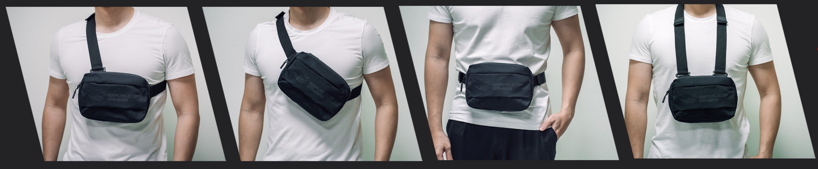 Çıkarılabilir tokalar ve ayarlanabilir omuz askısı, ROG Ranger BC1001'i dört farklı şekilde takmanıza olanak tanır. Sadece takın ve dışarı çıkın.