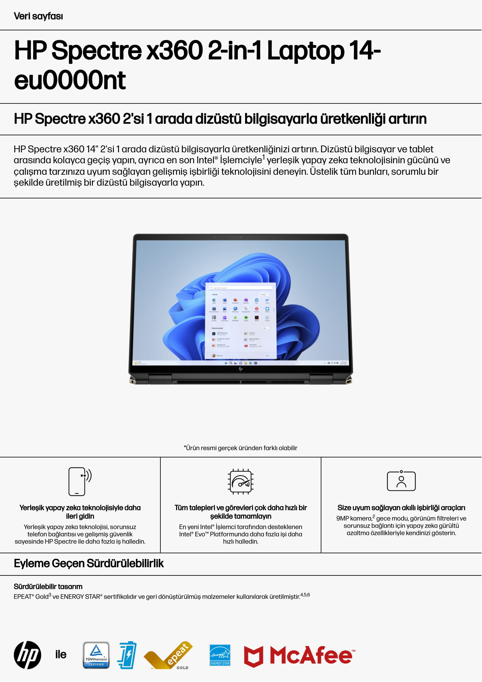 HP Spectre x360 2-in-1 Laptop 14-eu0000nt 9v2r9 ea Ürün Özellikleri