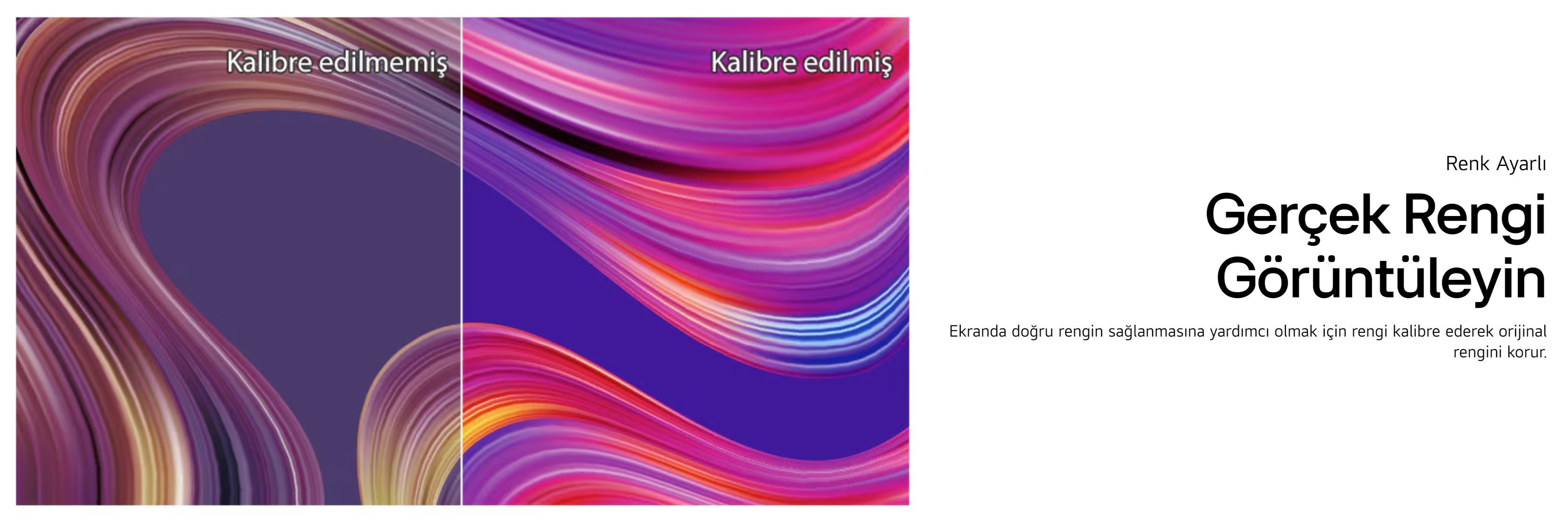 Bu aerodinamik ekran, üç tarafında ince bir çerçeveye sahiptir ve göz kamaşmasıyla bağlantılı rahatsızlıkları yaşamadan, gerçekçi görüntülerle sürükleyici bir görsel deneyim sunar.