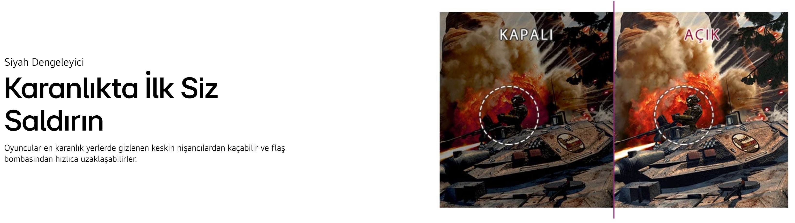 *1ms Hareket Bulanıklığı Azaltma özelliği daha düşük parlaklığa neden olur ve bu özellik etkinleştirildiğinde aşağıdaki özellikler kullanılamaz: Radeon FreeSync™/DAS (Dinamik Eylem Senkronizasyonu)/Titreşim Önleme.