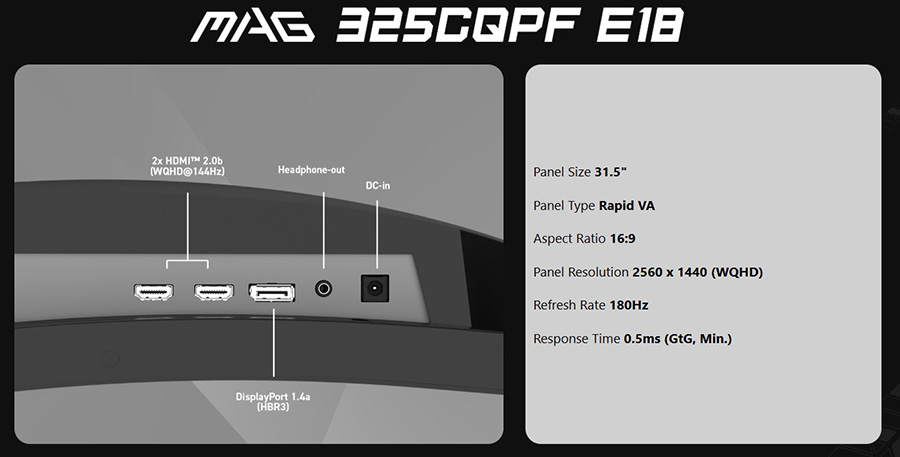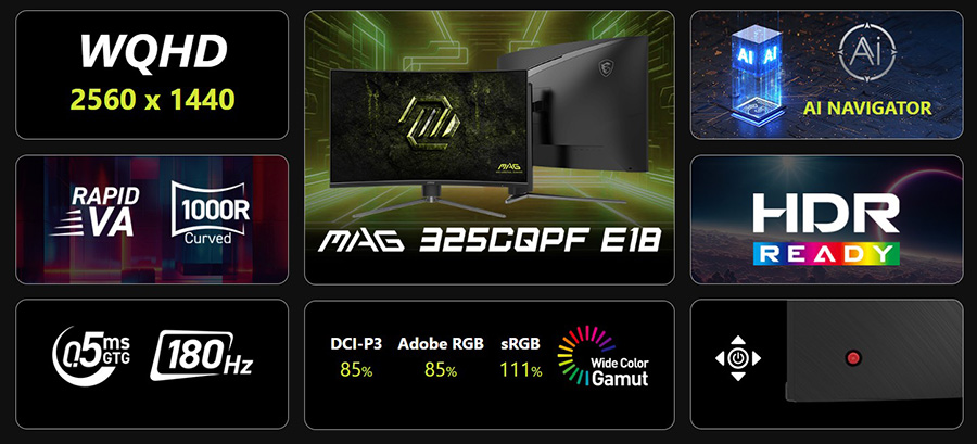 MAG 325CQPF E18 oyun monitörü ile sürükleyici oyun deneyimini yaşayın. 2560x1440 (WQHD) panele, 180Hz yenileme hızına ve 0,5ms (GtG, Min) tepki süresine sahip bu monitör HDR Ready özelliğine de sahip olup, kontrast ve gölgelerdeki ayarlamalarla göz alıcı ayrıntıları geliştirir. Rekabetçi FPS, nişancı RPG/MMORPG ve uçuş/yarış simülatörü türleri için tasarlanan MSI MAG 325CQPF E18 oyun monitörü, oyuncuları oyunun ötesini göstererek, gündelik oyun deneyimini yeni bir seviyeye taşıyor.