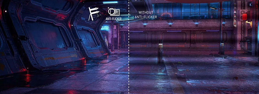 Anti-Flicker ve Less Blue Light teknolojileri ekrandaki kırpışmayı azaltarak ve mavi ışık yayılımını sınırlandırarak konforlu bir izleme deneyimi yaşatır. Böylece göz yorgunluğu yaşamadan saatlerce oynayabilirsiniz.