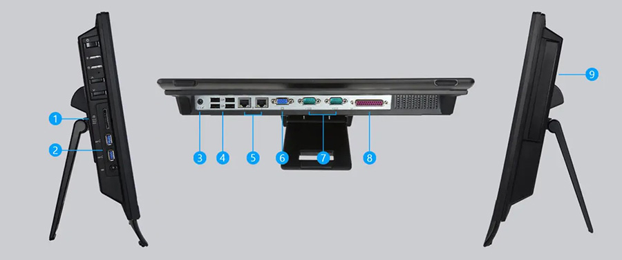 PRO AP162T ADL üzerinde barkod okuyucular, kredi kartı okuyucular ve fatura yazıcılar gibi POS cihazlarına kolay bağlantı için 2 adet COM portu ve 6 adet USB portu bulunur.