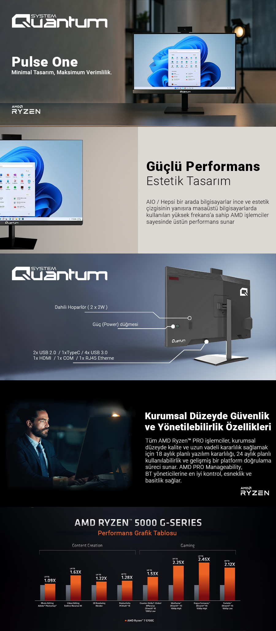 Quantum Pulse One SA3207 23.8'' Ryzen 7 5750G 16GB 512GB SSD Wifi+BT 1xHDMI IPS AIO PC
